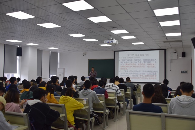 肖洪老师首先针对宪法修改的内容作了五点具体阐述;随后,肖老师对大学生安全提出六点要求:套路贷的认识与防范——不要因为过度消费陷入被骗陷阱;就业的安全——如何识别传销;言论自由的限度问题——表达意见应该以合法的方式来反映;恋爱中的纠纷及犯罪——注意把握尺度;个人信息的泄露——防电信、网络诈骗;“黑车”的风险——防“黑车”的侵犯。
