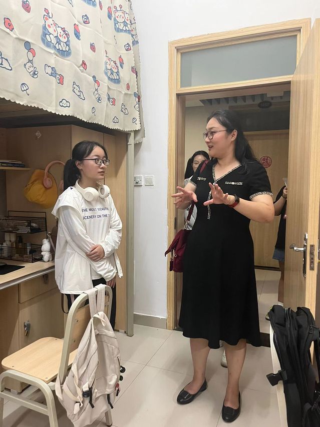 在走访寝室的过程中,校领导和老师们与新生亲切交谈大学新环境的适应状况、进入校园的感受、专业学习规划等方面的问题,并和外省同学交流各自地方特色,给学生送去了满满的关怀和温暖。同时,老师们表示希望同学们重视自己的大学生活,以饱满的精神投入到新学期的生活与学习中。此外,校领导查看了宿舍有无安全隐患,并提醒同学们存在问题要及时报修,这种自然、和蔼的交流方式给新生们留下了深刻的印象。