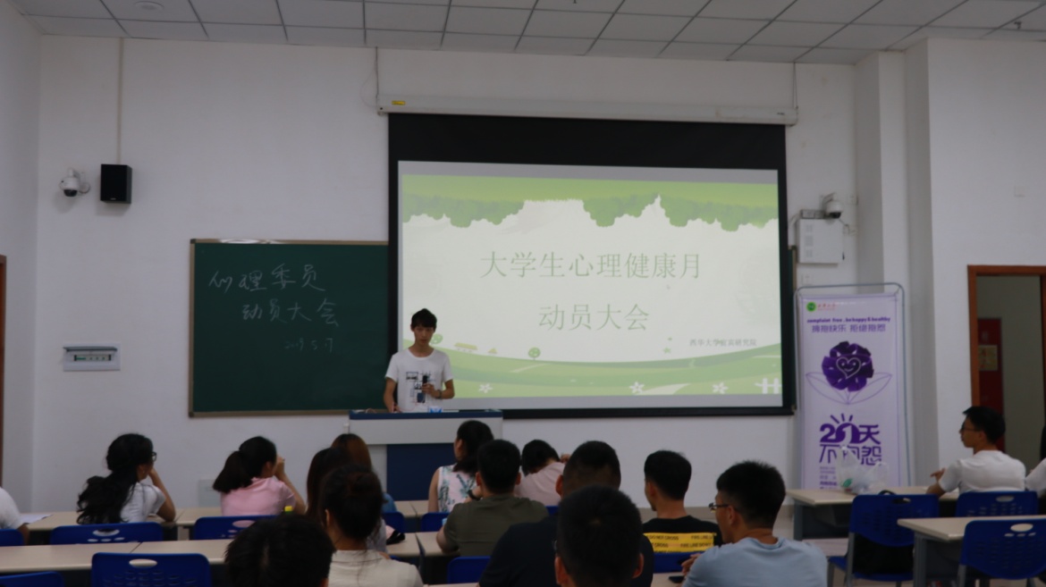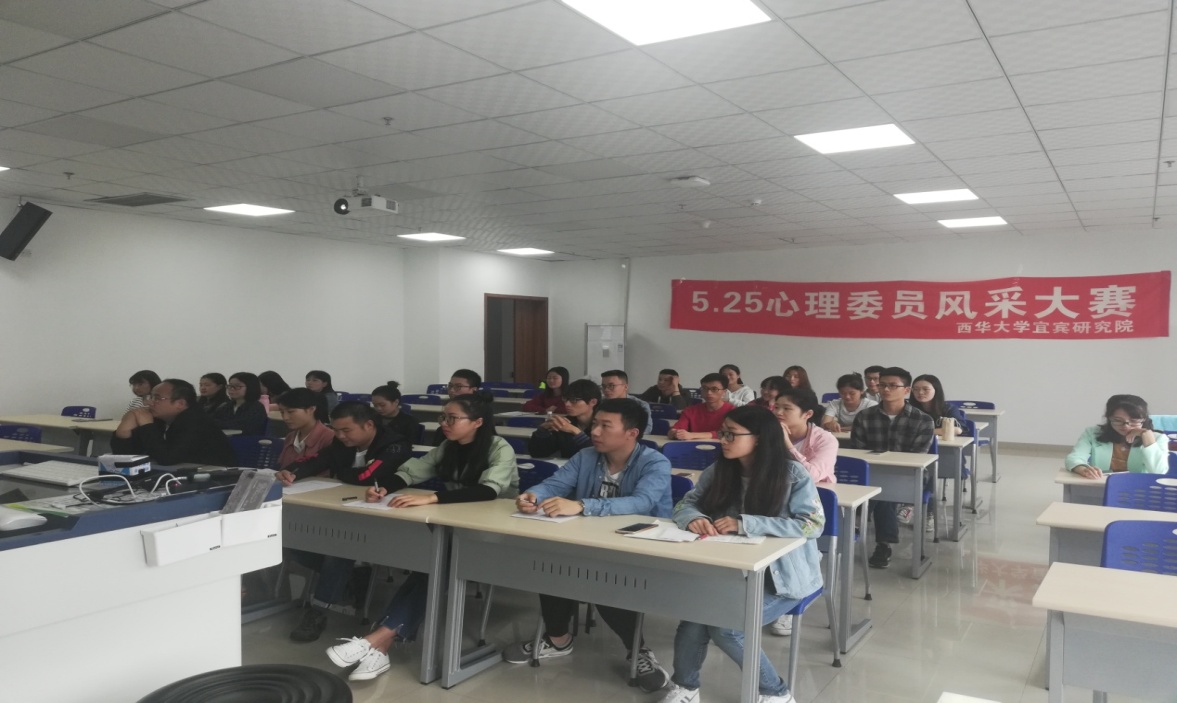 5月17日-29日,宜宾研究院团委组织开展5.25心理健康日系列活动。17日,宜宾研究院心理部在宜宾校区1-102召开5.25大学生心理健康月活动动员大会,到会人员包括学生会心理部成员以及校区心理委员。主持人首先从大学生心理健康的重要性出发,说明了本次健康教育活动举办的重要意义,随后组织心理委员进行宣誓。接下来,介绍了本次心理健康月系列活动分别为:“21天不抱怨”、“心理委员风采大赛”、“5.20荧光夜跑”、“5.25快乐观影”。