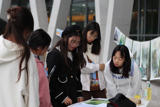 活动期间每日上午,刀画展的同学们开始准备画展现场摆点。随后进行作品展览,向观众讲解刀画背景及技法,并由专业人员向观众展示刀画讲师作品进行现场作画并讲解,为同学们揭开刀画的神秘面纱,让更多同学了解刀画这项中国传统非遗文化,亲身体验到刀画的魅力。同时带领同学们亲手感受简单的刀画创作,让所有喜欢绘画的同学们有机会拿起画笔进行创作。