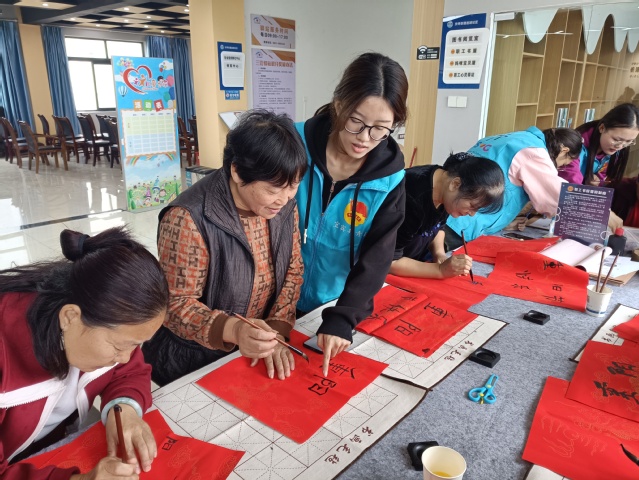 本次重阳节主题社区活动内容主要分为三个部分,分别为重阳微电影放映、手工艺品制作和包饺子。在重阳节微电影播放活动中,居民们通过影片了解到了有关重阳节的由来和习俗,唤起了内心对优秀传统文化的关注与热爱。随后,居民们在志愿者的带领下进行了“五谷杂粮画”和“写福添寿”的手工活动。居民们用各种豆类和大米等粮食在画纸上作画,不仅画出了粮食丰收、家人团聚、社会和谐安乐等各种各样的景象,还传递出五谷丰登、国泰民安的好寓意。在写福添寿活动中,居民们在红色宣纸上写下祝福和对未来的期许,并将祝福作品赠与他人。本次活动不仅让大家深切感受到了重阳节的浓厚节日氛围,收获了更多的福气与快乐,还培养了志愿者敬老、爱老的优秀品质。