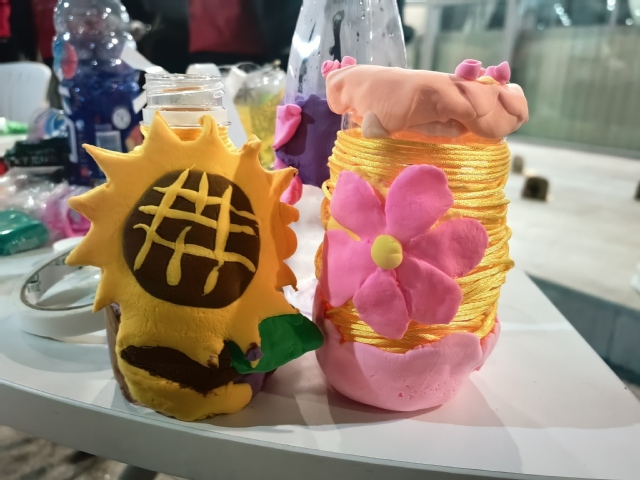 变废为宝,“瓶”空再造。活动以让废弃品发挥更大的作用、提高空塑料瓶的利用率为出发点,志愿者们提供空塑料瓶供同学们现场创作,同学们可以根据自己的想象和创意设计出属于自己的艺术作品。