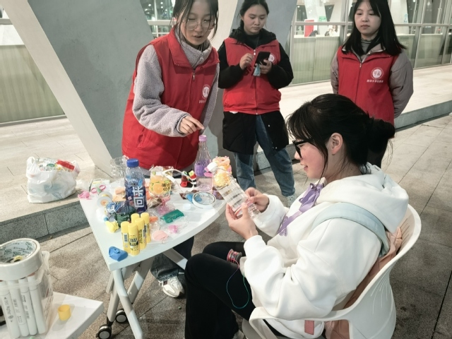 为普及绿色生活方式,提高当代大学生的环保意识,构建文明和谐校园。宜宾校区青年志愿者服务队于20231130下午在宜宾校区二食堂门口开展了以“低碳环保,齐心绿”为主题的环保艺术节系列活动。本次环保艺术节活动从“瓶”空再造、垃圾分类个方面开展活动。