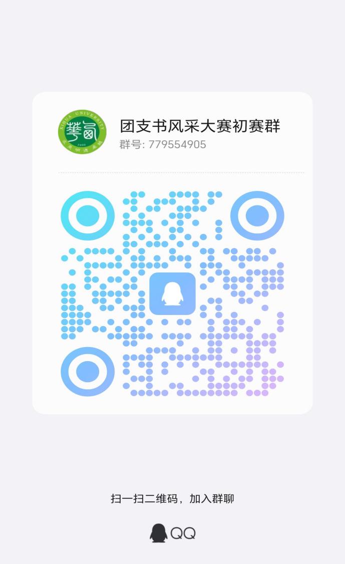 报名阶段:参赛团支书按照要求填写下方报名表提交至指定邮箱:xhybtwzzb@163.com并通过扫描二维码或搜索官方QQ群号:779554905加入初赛QQ群。工作人员将在此群发布比赛相关具体信息,报名表提交及进群截止日期:2024年3月31日。(报名表详见附件一)