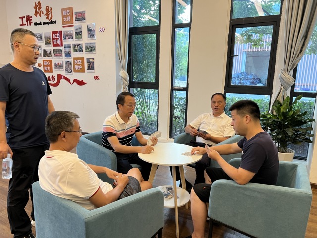 比赛以科室为单位,共组成六支队伍,采用三局两胜淘汰制选出获胜队伍。本次比赛新手、老手齐上阵,个个精神饱满,各显身手。比赛中,选手们或沉思冥想、或镇定出牌,表现出良好的竞技状态和合作精神。每结束一次对决,选手们纷纷回味复盘,意犹未尽,享受着与队友合作共赢带来的欢乐与惊喜。整个“职工之家”现场欢声笑语此起彼伏,气氛十分活跃。