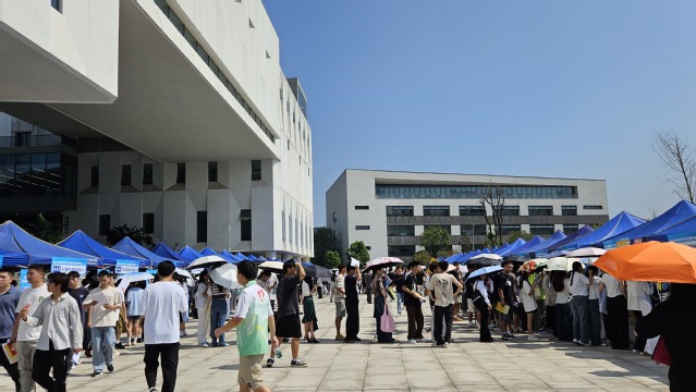 为全面贯彻落实党中央、国务院关于高校毕业生就业创业工作的决策部署,全力以赴促进毕业生高质量充分就业,9月19日,宜宾校区2025届毕业生秋季双选会(第一场)在宜宾校区图书馆前广场成功举办。中国工商银行股份有限公司、中国水利水电第五工程局有限公司、绵阳巨星永磁材料有限公司、四川川润股份有限公司等45家来自智能终端、新能源、新材料、通信等行业的用人单位现场参会,提供岗位1200余个。