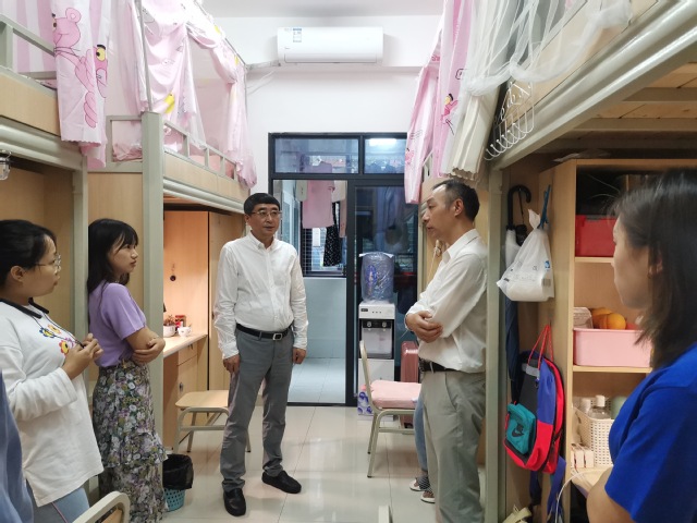 王小林一行当晚走访了学生宿舍、食堂,详细了解同学们返校后的学习、生活情况,认真倾听同学们对学校疫情防控、教学安排、考研和就业等方面的意见和建议,深入了解同学们的困难和需要解决的问题,并对同学们的学习和生活给予多方面建议。在食堂,王小林一行检查了食堂对疫情防控工作落实情况,要求工作人员坚决守住食品安全底线,继续加大安全监管力度,不断提升师生就餐体验,为师生提供更加贴心的服务和就餐环境。