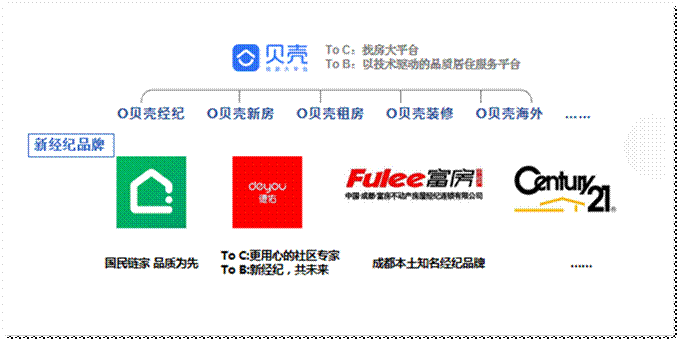贝壳找房于 2018 年 4 月正式上线,涵盖二手房、新房、租房、装修和社区服务等众多类目,通过开放数据资源和技术能力,聚合和赋能全行业的服务者,打造产业互联网下的“新居住”品质服务生态,致力于为全国家庭的品质居住提供全方位服务连接。目前贝壳找房已进驻全国近 100个城市和地区,连接 2.1 万家门店和超过 20万新型经纪人,入驻平台的新经纪品牌超过 160 个。