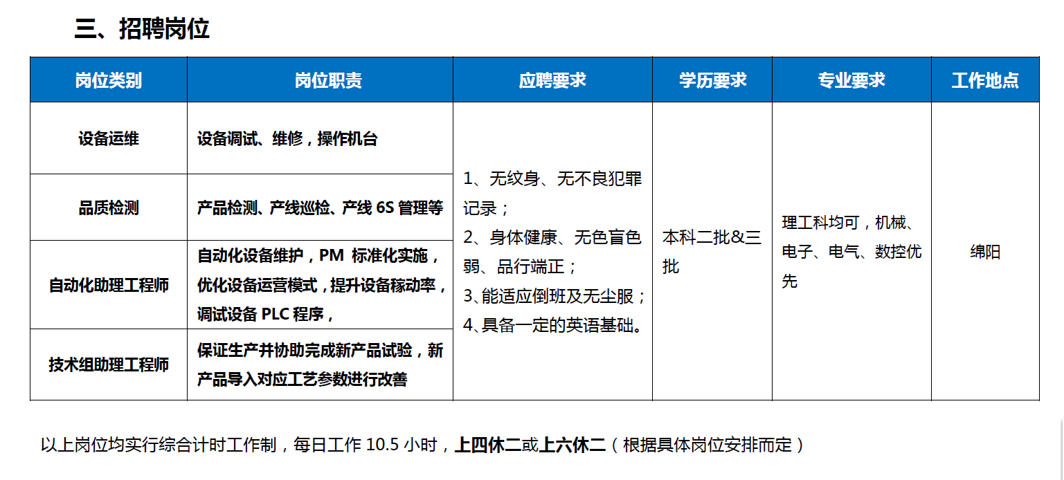 详情请咨询: 0816-2127688 (绵阳京东方光电科技有限公司-人力资源部)