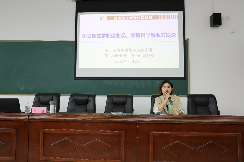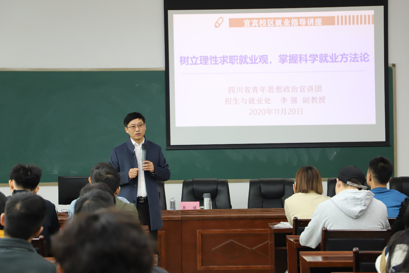 为帮助同学们做好职业规划,从思想、行动上做好就业准备,11月20日上午,宜宾校区在1教106教室举办了以“树立理性求职就业观,掌握科学就业方法论”为主题的就业指导讲座。本次讲座特邀学校招生就业处就业科科长、四川省青年思想政治宣讲团成员李强副教授担任主讲人。校区共200余名学生参加了此次讲座,学工科邹颖老师担任讲座主持人。