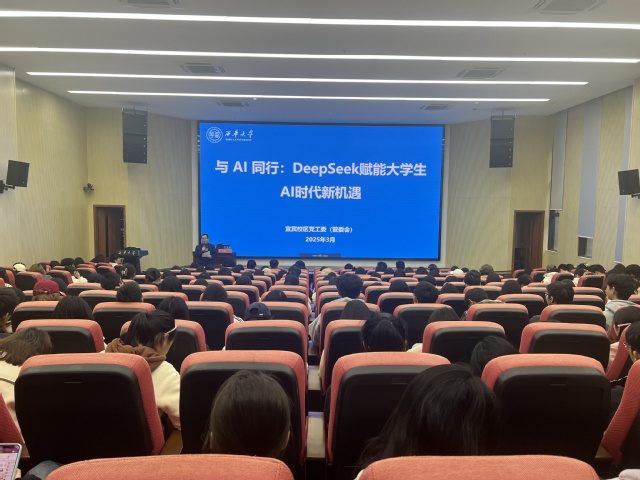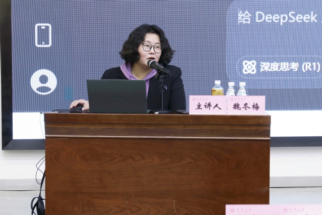魏冬梅以“与 AI 同行:DeepSeek赋能大学生AI时代新机遇”为主题,深入探讨AI时代的学习变革,介绍大模型发展历程及DeepSeek平台功能。在实际操作环节,魏老师现场依次演示了AI在视频创作、搜索、办公、编程、数据分析的应用场景。她特别强调,在众多AI工具中,选择适合自身需求的工具至关重要,并分享了主流AI工具的使用技巧。魏老师最后鼓励同学们积极拥抱AI技术,将其作为提升个人竞争力的重要助力。这场讲座不仅让师生们直观感受到AI技术带来的效率提升,更为大家适应AI时代的学习和工作方式提供了切实可行的新思路。