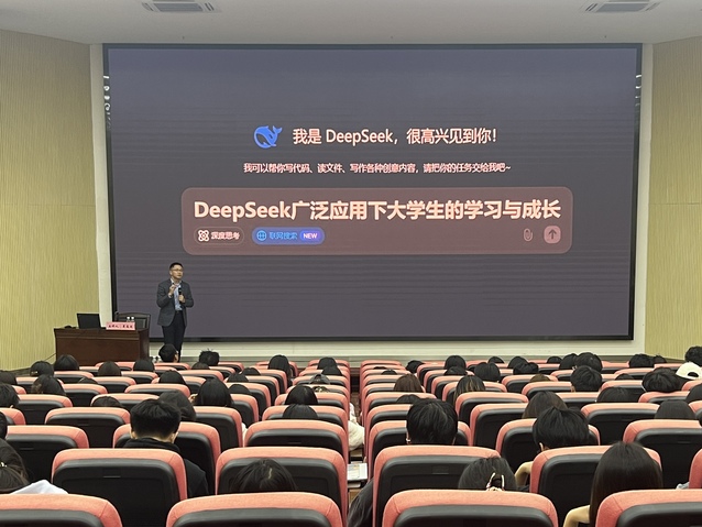 讲座伊始,夏高发让同学们浏览了五粮液校园招聘岗位拟录用人员名单,揭示AI时代职业规划的必要性与塑造核心竞争力的紧迫性,由此正式开启讲座内容。他概述了DeepSeek在科学研发、教育教学、文化传播、医疗卫生等领域的应用,深入探讨现阶段以DeepSeek为代表的生成式人工智能对传统岗位的替代效应。他系统分析了人类与人工智能在创造力、判断力、适应力、共情与人际交往能力等核心维度的本质差异,鼓励同学们对标这些关键能力要求,向行业榜样学习,找准差距,打造AI无法替代的核心竞争力。
