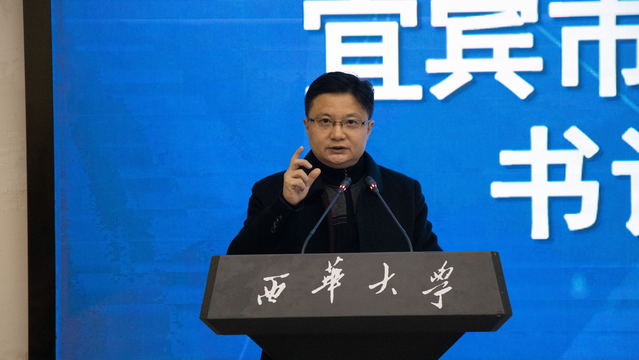 宜宾市委教育工委书记、市教育体育局党委书记、市双城服务局党委书记李华发表会议贺词