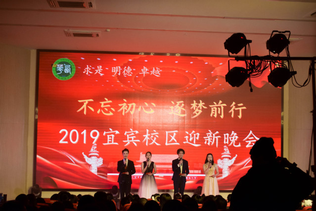 12月18日,宜宾校区“不忘初心 逐梦前行”2019迎新晚会在校区报告厅举行。宜宾betway必威西汉姆联科教有限责任公司总经理郭建军,宜宾研究院综合科熊必刚、Betway必威西汉姆联官方网站科科长魏平强、安全保卫科科长李康,宜宾市科教集团相关领导以及宜宾研究院300余名师生共同观看了晚会。