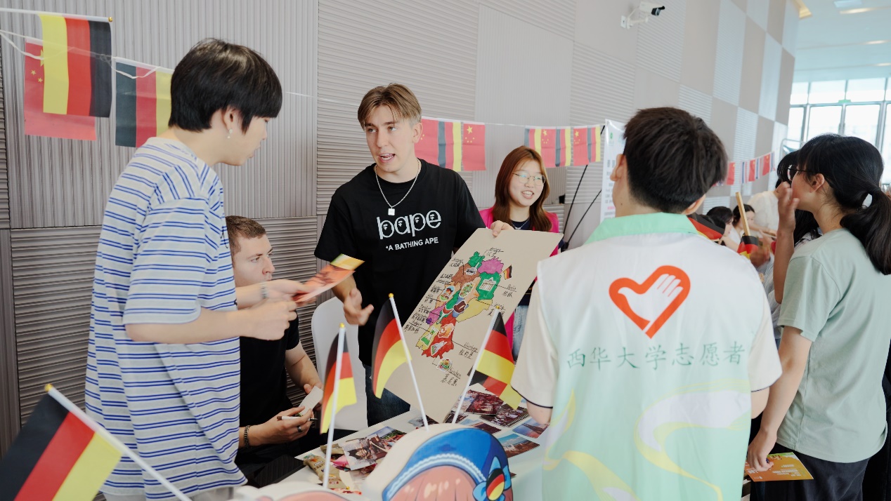 开幕式后,Mini世博会活动精彩亮相。现场设置了多个国家的特色展区,留学生与中国学生一道,通过展览、互动游戏和美食品鉴等多种形式,生动展示了各国丰富的文化传统和风土人情。活动现场热闹非凡,师生们兴致勃勃地参与互动,尽情感受不同国家文化交融的魅力。