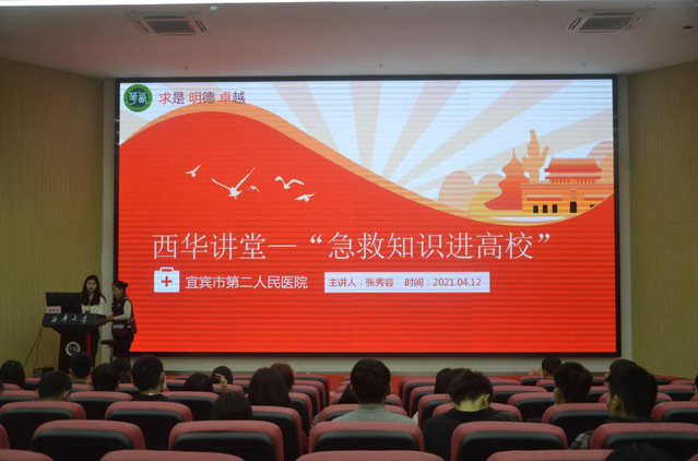 为提高民众急救知识的普及率,提高群众的自救互救能力,宜宾校区于4月12日在101报告厅举办了以“急救知识进高校”为主题的西华讲堂。本次讲座特邀宜宾第二人民医院急诊科科长张秀容医生和急诊科护理组长康霞担任主讲人。宜宾市第二人民医院数十位医生及校区近100名学生参与了此次讲座。