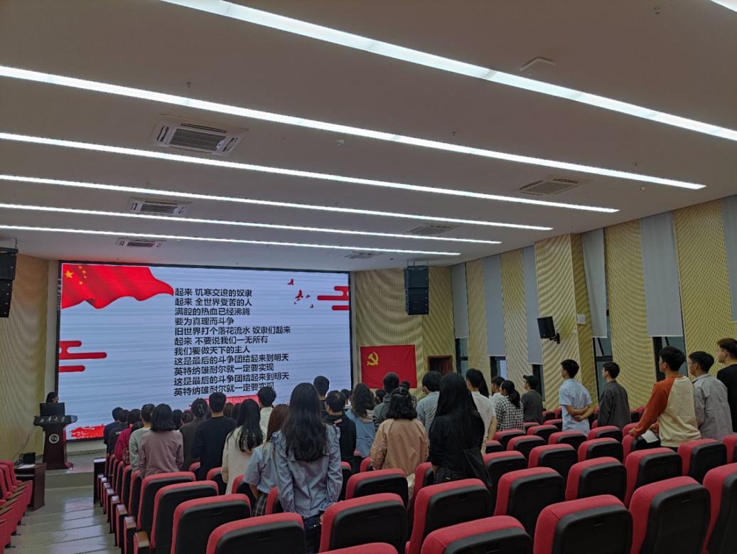 全体参会人员面向党旗齐唱《国际歌》,分享交流会在庄严的氛围中拉开序幕。