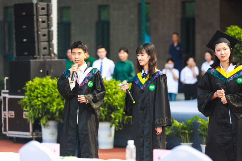 “同学们,你们在中国共产党成立100周年的重要时刻,以青春之名,赴时代之约。你们与这个伟大的时代同向同行,是见证者,也是亲历者,更是建设者。”余孝其主持典礼时说到,在抗击疫情的危难面前,在脱贫攻坚的一线战场,在科技攻关的最前沿,在工作繁琐却又离群众最近的社区基层 ……无数青年不负期许,将最美的年华无私奉献给了祖国和人民!今天,同学们将从大学这个温暖的集体走向充满挑战的人生,母校将永远注视着同学们前进的脚步,为同学们的成长进步加油喝彩。