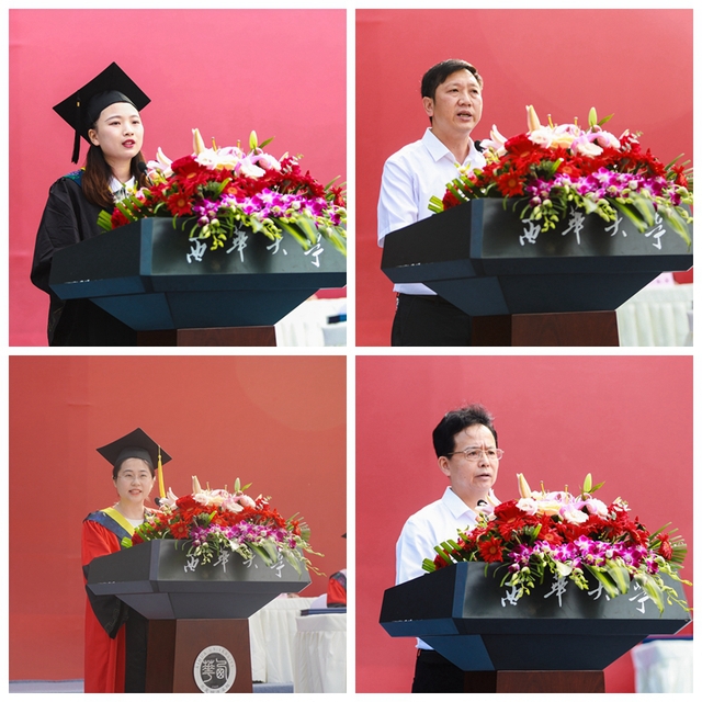 毕业生代表、汽车服务工程专业学生李利在发言时表达了对学校的不舍和感激之情,她深情地说:“两年前,我们满怀梦想,背负期望,通过专升本的方式聚首在西华相逢在宜宾。两年后的今天,我们作为宜宾校区首届毕业生又将怀着对母校的留恋,奔赴各地开创属于自己崭新的明天。”