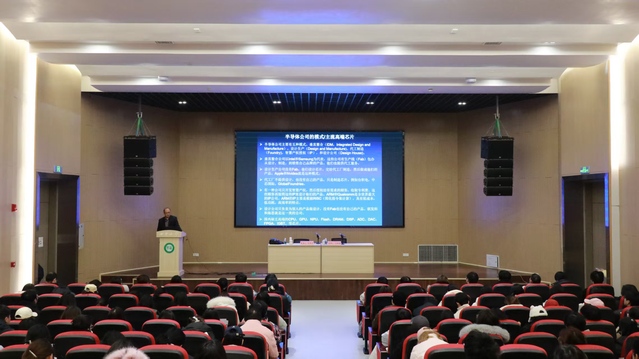 刘俊杰以“微电子与集成电路的背景、现况、应用、可靠性与展望”为题,为学生讲述了集成电路技术现况与展望,并以产业的角度说明了目前集成电路技术发展的机遇和挑战,同时介绍了可靠性领域的背景和静电保护设计的要求。他还以集成电路在手机通信、人工智能等领域的应用为例,指出集成电路可靠性技术是发展新一代半导体产业的动力之一,强调可靠性技术对提升集成电路质量的重要性。他还动情讲述了当年艰辛求学之路,勉励同学们珍惜时光和优越学习条件,保持对知识的渴望和内心的坚定,走好人生旅途。