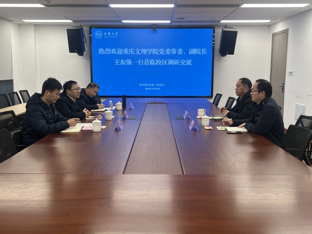 12月19日,重庆文理学院党委常委、副院长王东强一行到宜宾校区调研交流。宜宾校区党委常务副书记陆跃文、宜宾校区管委会副主任刘传辉参加座谈。