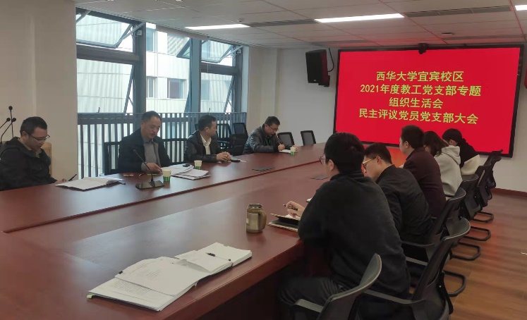 2022年3月3日下午,宜宾校区教工党支部在行政楼502会议室召开了2021年度专题组织生活会暨民主评议党员党支部大会,会议聚焦深入学习贯彻习近平新时代中国特色社会主义思想,学习贯彻党的十九届六中全会、省委十一届十次全会和学校第二次党代会精神,教育引导各位党员以史为鉴、开创未来,埋头苦干、勇毅前行。本次会议由校区党工委常务副书记、教工党支部书记陆跃文主持。