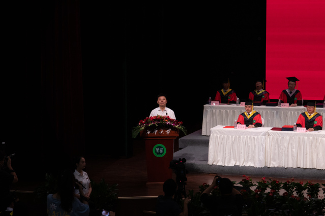 “万里山河酬壮志,无边岁月是征程。”在庄严的国歌声中,毕业典礼拉开序幕。宜宾市委副书记、宜宾市人民政府市长廖文彬用“山高水长,相逢有幸;牢记嘱托,感恩奋进;选择宜宾、燃梦青春”三句话代表宜宾市委、市政府向同学们表达了最真挚的祝福,并诚邀大家继续选择就业、生活在宜宾。