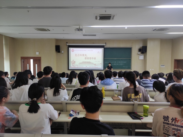 薛敏以“什么是中国共产主义共青团”的问题开篇,以精美的课件为载体,图文并茂地向同学们讲述了中国共青团的起源、发展。“忆百年荣光,普青春华章。”魏平强根据共青团成立100周年的历史背景,总结了六条中国共青团成立百年跟党奋斗的重要经验。陈太平总结本次习近平总书记的宜宾之行,勉励同学们自觉践行社会主义核心价值观,努力做到德智体美劳全面发展。“新时代青年是祖国的未来、民族的希望……”李芩旭通过列举新时代青年范例,指出了当代大学生应爱国爱党爱社会,并应认真履行新时代新青年的奋斗与担当。