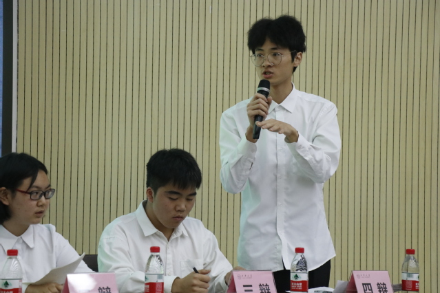 经过前期激烈的角逐,最后登上决赛舞台的两支代表队伍分别是管理学院代表队和机械工程学院代表队。本次决赛由立论、辩驳、质辩、自由辩论和总结陈词五个环节组成。正反双方就围绕“故事的结局重不重要”这一辩题展开了激烈辩论。立论环节,正方一辩开门见山,用“结局是一种收场,是事物发展的必然结果,是过程铺垫汇成的最终走向。”这一论点开场,简明扼要地将己方论题关键词展开了相关阐述,拉开了本次决赛序幕,迅速带领全场观众进入激烈的比赛氛围。质辩和自由辩论环节中,两支队伍立足己方观点,抓住对方观点漏洞展开犀利提问,不断你攻我守、互不相让,充分展现了同学们逻辑与表达相互碰撞的辩论风采。通过四位评委老师对两队的辩论仪态、语言表达、时间把控和论证技巧四个方面的细致点评、打分,本次辩论赛决赛以正方——管理学院代表队获得冠军圆满结束。