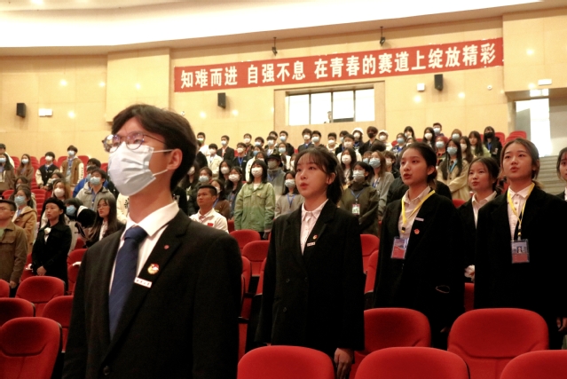 伴着《中国共产主义青年团团歌》的歌声,换届大会正式拉开帷幕。会上,第四届学生代表侯夏梦同学从自身出发叙说了在学生组织工作中的经历和对新一年工作的规划与承诺。接着,学生会主席团朱成毅同学的发言,有对过去一年工作的总结,更有对新一年的展望与期盼。他结合自身经历,激励了全体新老成员与他一起不忘初心,砥砺前行。通过李芩旭老师的发言,同学们更进一步了解到学生组织工作,并明白在今后的工作中不断完善自我。在挑战与机遇共存的环境下,上一届学生干部与干事们依然坚守岗位,圆满完成工作。在往后的日子里,新成员将承接上一届的工作,青春不懈,奋斗不止。