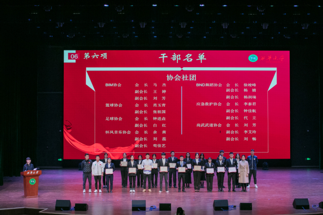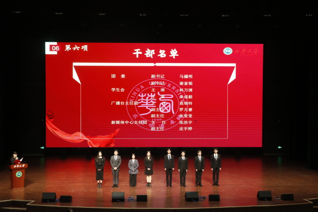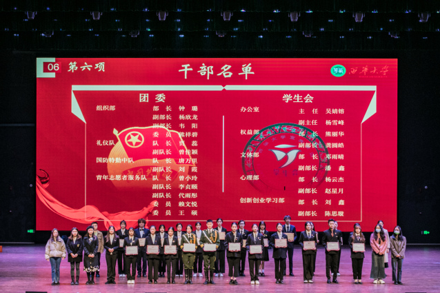 紧接着,莅临现场的各位领导和老师宣读各学生组织及协会优秀干事名单并颁发荣誉证书,宣读学生干部,第四届团委副书记、学生会主席团、新媒体中心主任、广播台主任名单并颁发聘书、合影留念。大会在此气氛达到了高潮。过去一年的工作画上了圆满句号,新成员跟随第三届学生会主席团成员刘智力同学宣读骨干誓词后,聆听毕达平书记的寄语,清晰地了解到学生组织工作在宜宾校区Betway必威西汉姆联官方网站中的重要位置,认识到自己身上肩负的责任。同学们将以毕书记的讲话为指导,将所学落实到日常工作中,砥砺前行,踔厉奋发。
