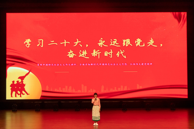 受到“学习二十大,永远跟党走,奋进新征程”氛围的熏陶,各个年级的同学都踊跃参与到此次比赛中来,用心感受,精心准备,在宣讲舞台上绽放着属于他们的青年之姿。各个队伍采取多种表演形式相结合进行宣讲:有的在宣讲中唱响红歌,礼赞祖国;有的用不同身份进行演绎,展示新时代青年敢想敢做,能做能成的风采。在宣讲中,我们在历史长河中回顾党的历史、感受新时期建设成就。