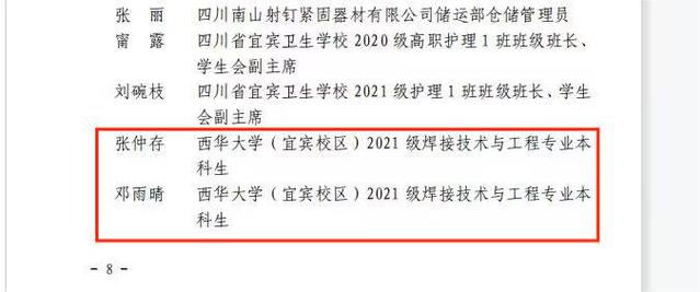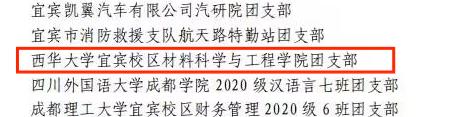 宜宾校区材料科学与工程学院团支部被评为2022年度“宜宾市五四红旗团支部”。2021级焊接技术与工程专业张仲存、邓雨晴荣获“宜宾市优秀共青团员”称号。校区机械工程学院团总支老师周岐燃荣获“宜宾市优秀共青团干部”称号。这份殊荣是校区一代代团学干部薪火相传、接续奋斗的光荣成果,是莘莘学子永远跟党走、奋进新征程的真实写照和生动缩影。