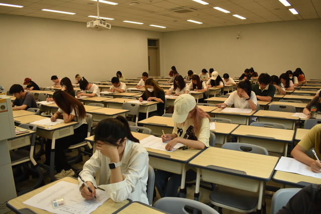 活动伊始,同学们依次进入教室,将手机交至指定位置,老师颁发试卷。共两个考场分别进行闭卷考试,每个考场有两位监考的同学及监考老师。时间一分一秒地过去,同学们握着笔杆争分夺秒地答题,时而蹙眉,时而奋笔疾书、胜券在握的样子……伴随着老师的声音,考试结束。